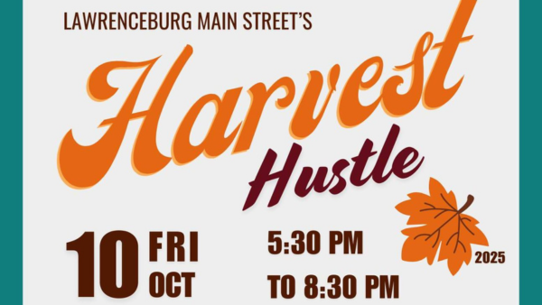 Don’t miss your chance to enjoy great local deals, specials, and tons of seasonal treats! For more information on the Harvest Hustle, contact Lawrenceburg Main Street at www.downtownlawrenceburg.com or find them on Facebook.